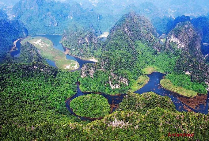 Bản thân quần thể danh thắng Tràng An được ví như “ Hạ Long trên cạn” vì khi từ trên cao nhìn xuống, hệ thống núi tràng An được bao bọc bởi nước hồ xanh mướt y như một Hạ Long thứ 2. Nếu Hạ Long mang một vẻ đẹp khá sắc nét, hùng vĩ thì Trang An lại thanh thoát, siệu thực đến động lòng người.