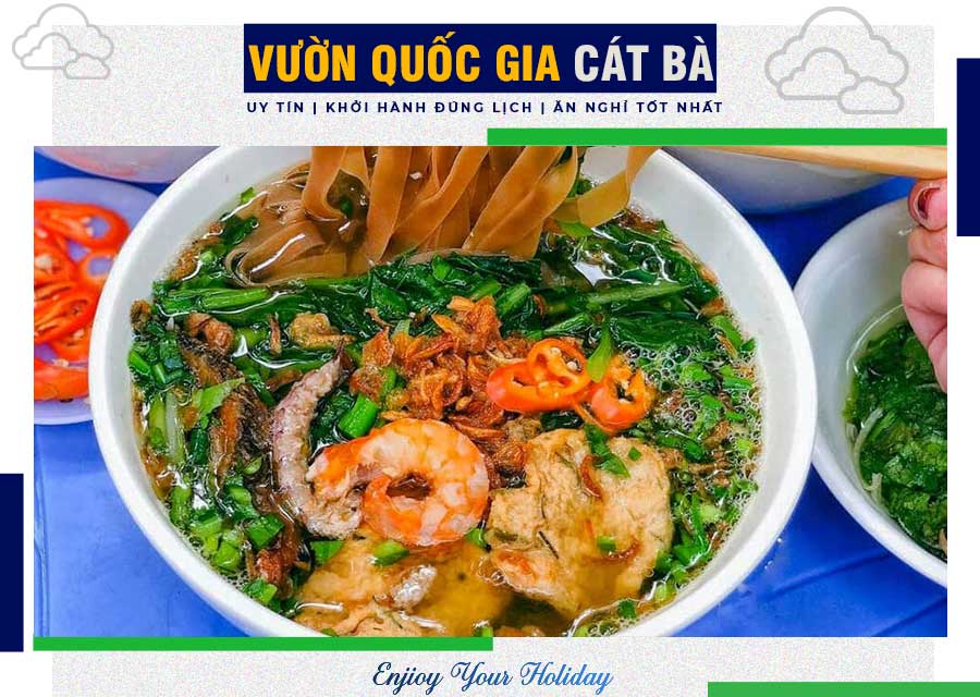 Đến Vườn quốc gia Cát Bà chắc chắn bạn không nên bỏ qua những món ngon đặc sản của nơi đây như Bánh đa cua, bánh bèo, cùng nhiều hải sản tươi ngon sam biển, tu hài, cá song, tôm hùm, bề bề, rắn biển… vô cùng thơm ngon, hấp dẫn.