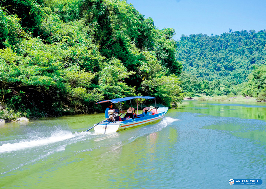 Có nhiều trải nghiệm dành cho bạn khi đến sông Giăng, như chèo thuyền thưởng ngoạn cảnh đẹp đôi bờ với vách đá vôi sừng sững.